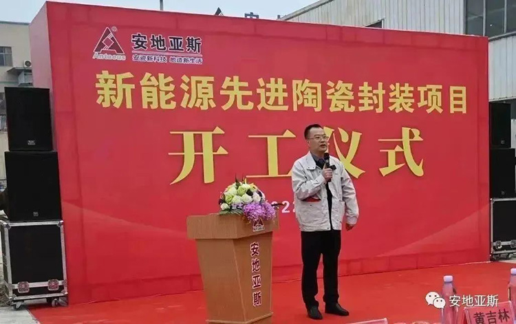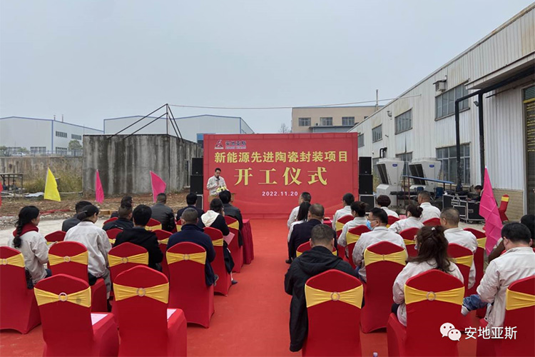2022年11月20日早上,萬里無云,溫暖的陽光灑滿大地,公司新能源先進陶瓷封裝項目工地上彩旗飄飄、火紅的氣球隨風飄揚。主席臺上“新能源先進陶瓷封裝項目開工儀式”幾個大字分外醒目,今天是安地人高興的日子,我們將在這里舉行新廠房建設(shè)開工儀式。